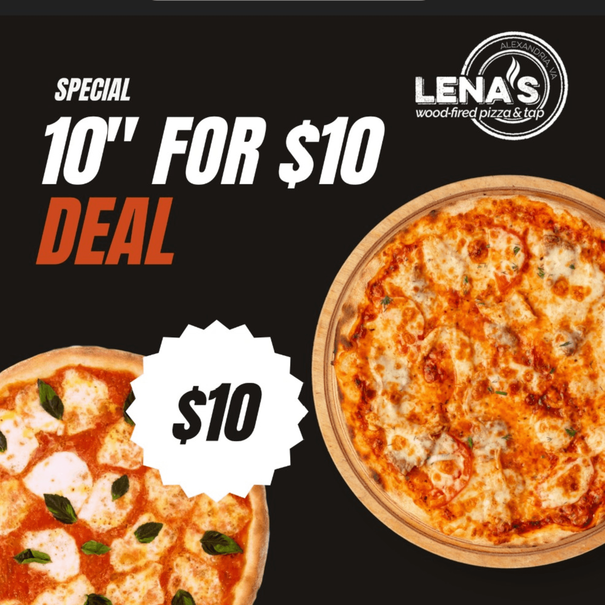 $10 Pizzas. $10 Wings. $10 Cocktails. Nov 10–26 | 11 AM–7 PM Dine-In or Direct Website Take-Out Only at Lena’s Wood-Fired Pizza & Tap.